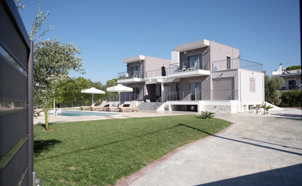 This property consists of two elegant 127sqm villas, which can easily be combined to create a spacious 255sqm residence on a generous 2000sqm plot. Ideally situated only 150m from the water and a short 350m walk to the renowned Drosia Beach, this villa offers the best of coastal living.