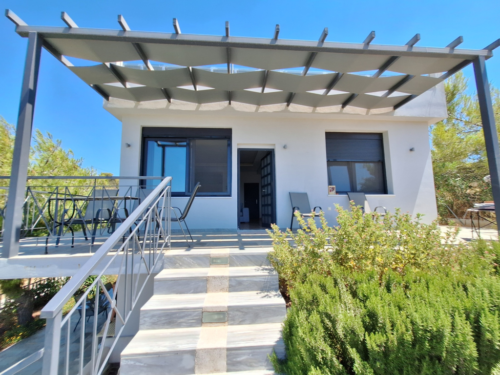 • On the 1st floor there is an independent apartment of 75m² consisting of 2 bedrooms, one of which is a master with a sea view and its own bathroom with a shower column, a single living room and kitchen also with a sea view, a bathroom with a dedicated laundry area.