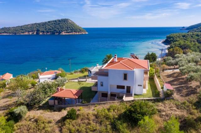 Residential complex in Kinira of Thassos with a total area of 320 sq.m. on a 613sqm plot consisting of 2 maisonettes of 100 sq.m. on the first and second floor and 2 apartments of 60 sq.m. on the ground floor, all those in a walking distance from the beach. The maisonettes on the floor are developed on two levels and consist each of them of 3 bedrooms, living room-kitchen, bathroom and WC. They have terraces, synthetic frames, energy fireplace and individual heating. The 2 ground floor apartments of 60 sq.m. consist each of them of a bedroom, living room - kitchen and bathroom. The complex has a garden with BBQ, amazing sea view and is available fully furnished and equipped.