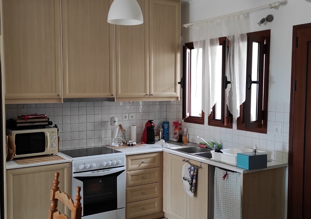 It is a 56sqm apartment on the ground floor with perfect view to the sea which is few meters away, situated in a small complex in Tsakaioi beach, Evia island..