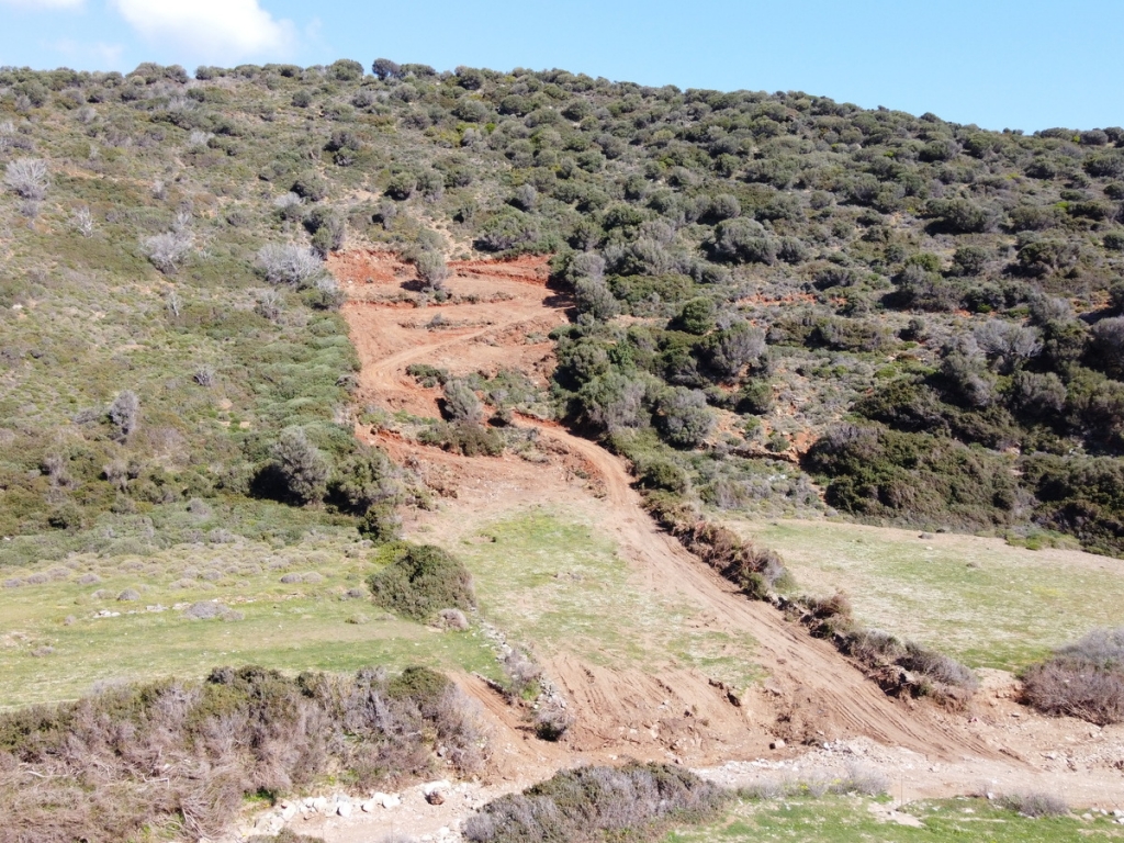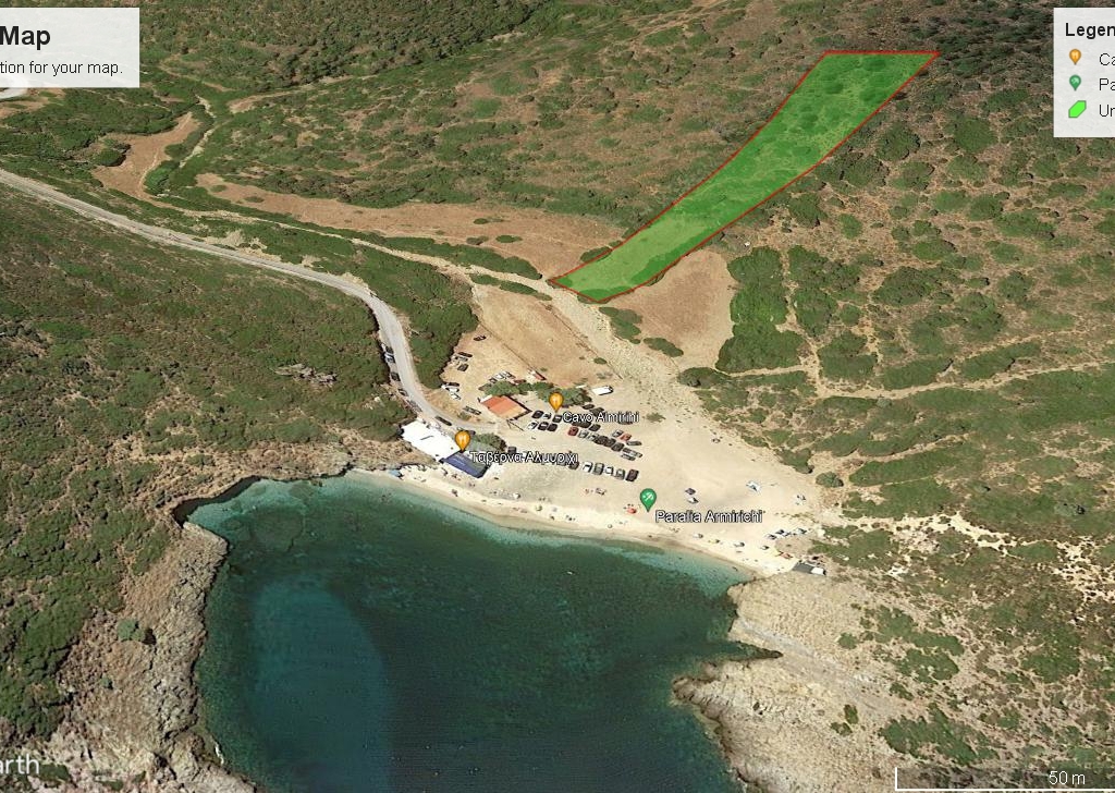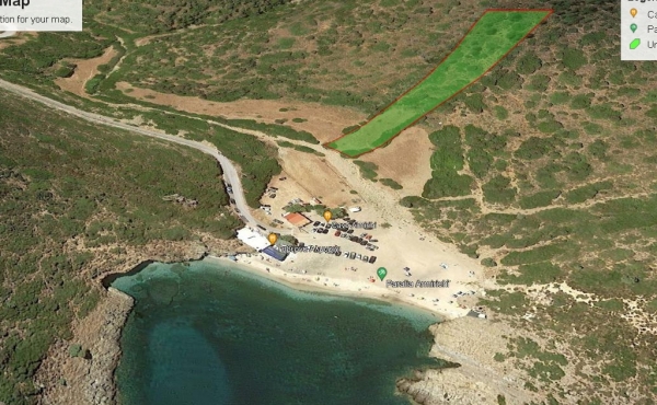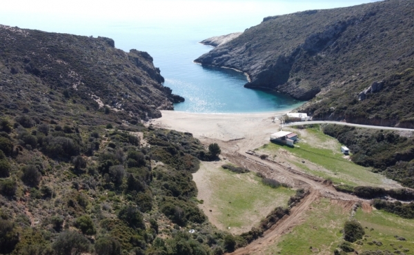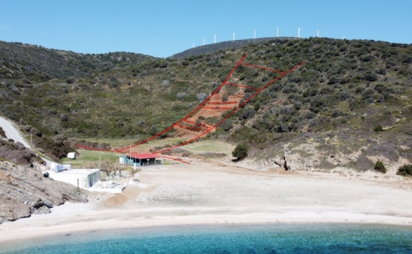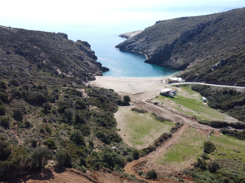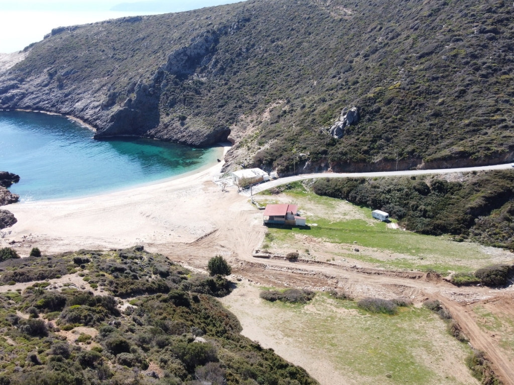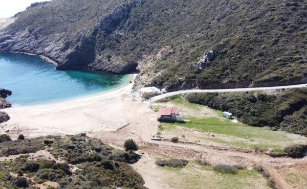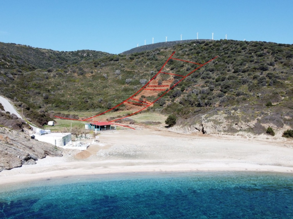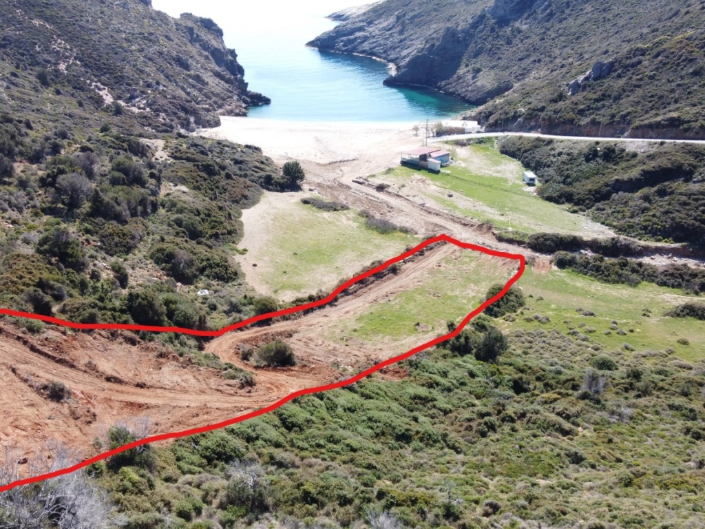 It is a 4.100sqm (5900sqm-1800sqm forest area) plot of land in front of Almyrihi beach in Evia island , where a dreamy house can be built with direct access to the beach .