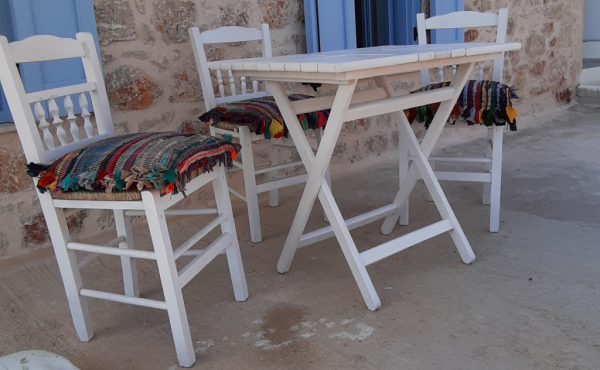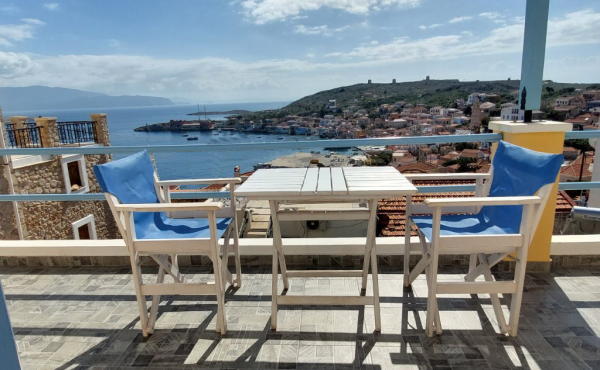 The first floor 25,70 sq. m has a 11.3sq m loft with two double beds. Its kitchen/living room is well fitted and includes washing machine, fridge/freezer, air conditioning, TV, table and chairs. Outdoor furniture is included for the balcony which offers privacy and an amazing view from the whole island of Halki to the island of Rhodes.