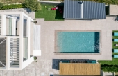 • Ground floor 100 sq.m .: Open space for dining and living room (with large sofa measuring 3.30 x 2.40) followed by a fully equipped modern kitchen - a very pleasant bright common area. From this large open space, guests can access the large outdoor terraces, the garden and the large swimming pool. On the same level there is a bedroom with a double bed and a bathroom with a shower.
