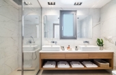• 1st floor 100 sq.m .: 3 bedrooms - all with double bed, one of which is very spacious with king size double bed and total 25 sq.m. private space. The two bedrooms have their own large terrace 3 meters overlooking the pool, and the 3rd terrace overlooking the mountain. At the same level one finds an equally spacious one bathroom with shower, room laundry, as well as a mini fridge and coffee maker.
