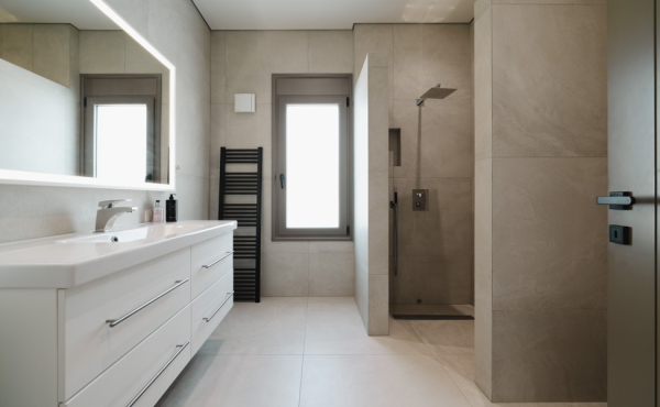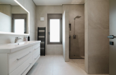 On the same level, there are 2 separate spaces used as a pantry, laundry room, with extra storage that provides more comfort. Downstairs access is provided either from an internal staircase or directly from the lower garden level, where one will find the remaining double bedroom for the guests and 2 very spacious rooms that can be transformed into a gym, a playroom or home-cinema.