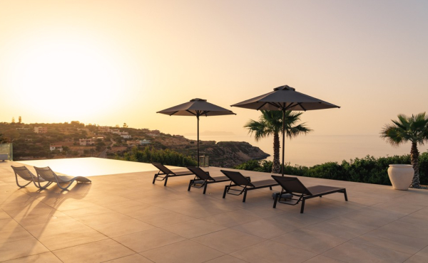 One notable feature of this villa is that next to it you will find a 30 m² interior stone built wine cellar built with unique design and taste, housed in an underground cave. Outside, the large infinity saltwater swimming pool with sunbeds and umbrellas, offers the perfect space to relax while enjoying spectacular and unobstructed views of the sea. Optionally it can be used off summer season, as its heat pump system makes it ideal for the winter. It goes without saying the BBQ area with the large dining table & kitchen and the fully landscaped garden also add to its appeal. Lastly, photovoltaic and solar panels make the house autonomous when it comes to electricity and hot water.