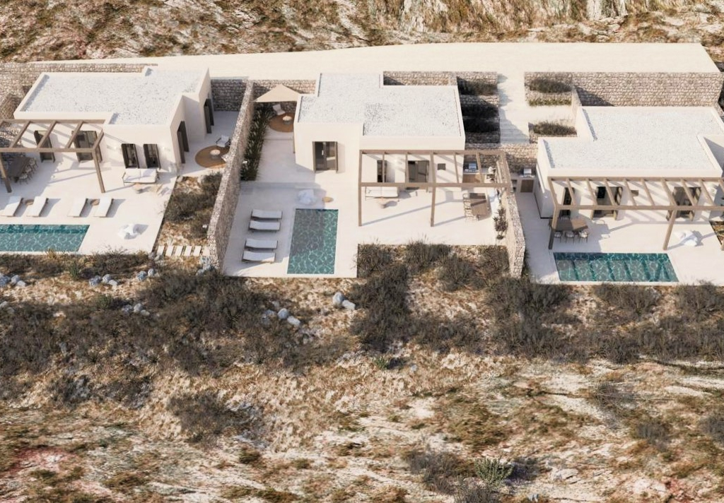 The 67sqm. house features three well-appointed bedrooms, two bathrooms, a private swimming pool, and a dedicated parking space. The standout feature is its outdoor area: a beautifully landscaped garden and a private pool that overlook the glistening Aegean, offering a tranquil oasis to unwind.